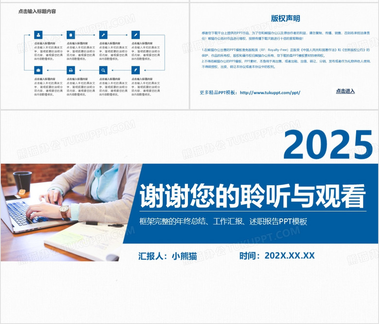 本作品内容为2025蓝色简约商务风季度工作总结报告通用PPT模板, 格式为 pptx, 大小8 MB, 页数为30,比例16:9, 请使用软件PowerPoint(2016)打开, 作品中主体文字及图片可替换修改,文字修改可直接点击文本框进行编辑,图片更改可选中图片后单击鼠标右键选择更换图片,也可根据自身需求增加和删除作品中的内容, 源文件无水印。 如认为平台内容涉嫌侵权,可通过邮件提出书面通知,我们将及时处理。