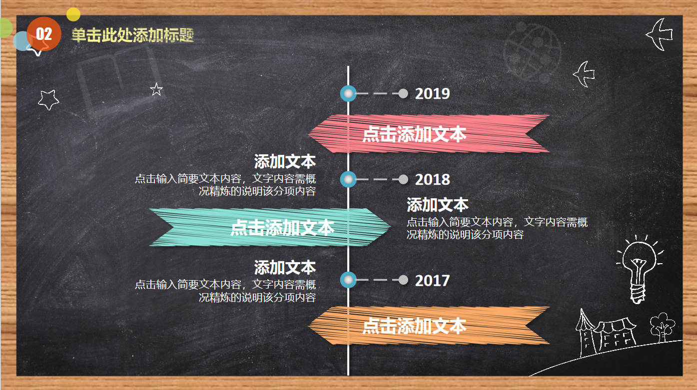 本作品内容为创意仿黑板粉笔风格教师讲课教学设计PPT模板, 格式为 pptx, 大小5 MB, 页数为33,比例16:9, 请使用软件PowerPoint(2010)打开, 作品中主体文字及图片可替换修改,文字修改可直接点击文本框进行编辑,图片更改可选中图片后单击鼠标右键选择更换图片,也可根据自身需求增加和删除作品中的内容, 源文件无水印, 欢迎使用。 如认为平台内容涉嫌侵权,可通过邮件提出书面通知,我们将及时处理。