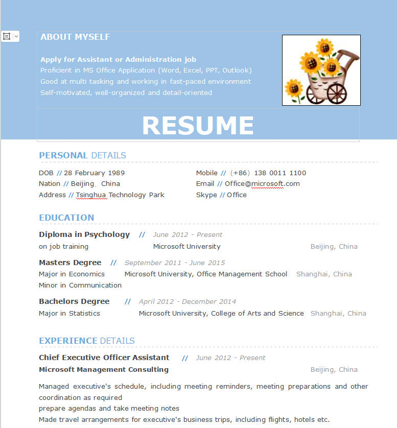 简单带照片英文简历模板